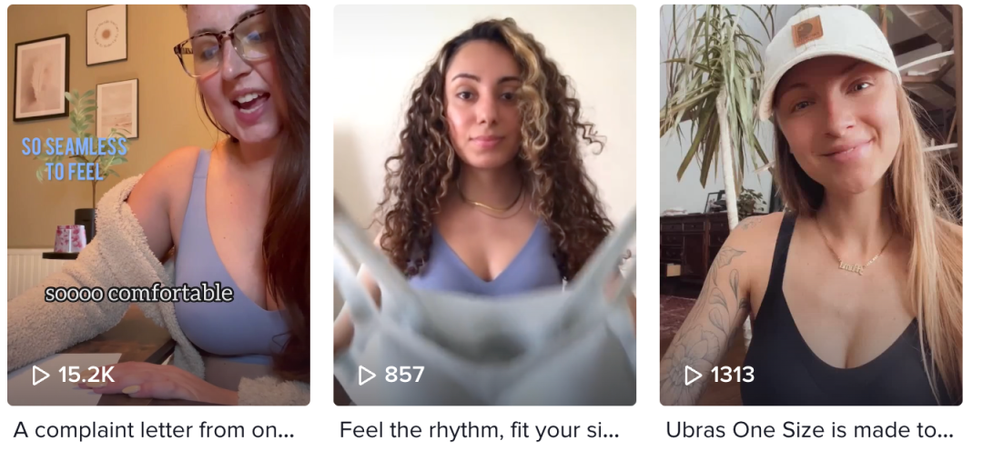 不僅是內(nèi)外,Ubras在北美也收獲了一大波關(guān)注。在Ubras的官方TikTok上,一條播放量超過1.5萬次的視頻記錄了一封顧客寫給品牌的投訴信,核心內(nèi)容是「Ubras,你怎么可以,你怎么能夠把內(nèi)衣做得如此舒適!1.5萬次的播放量有多高呢,對比一下其他幾條剛過千的視頻就知道了,何況品牌的TikTok粉絲數(shù)量還沒有超過5000人。