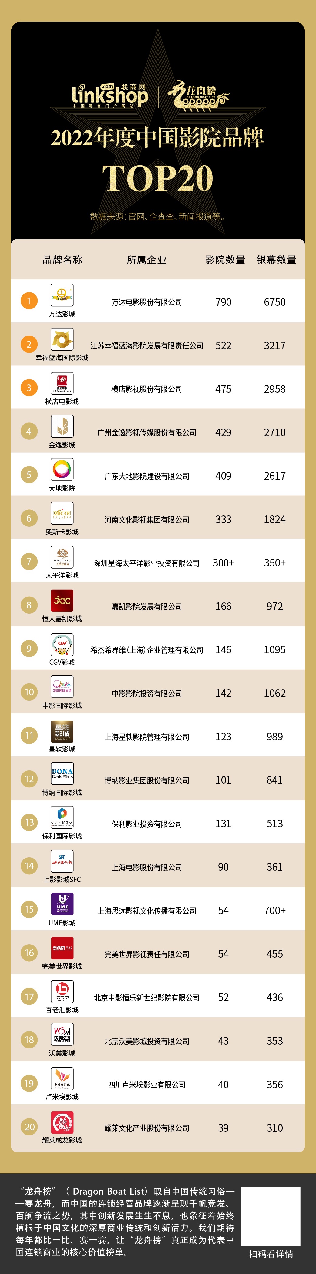 2022年度電影院連鎖品牌TOP20