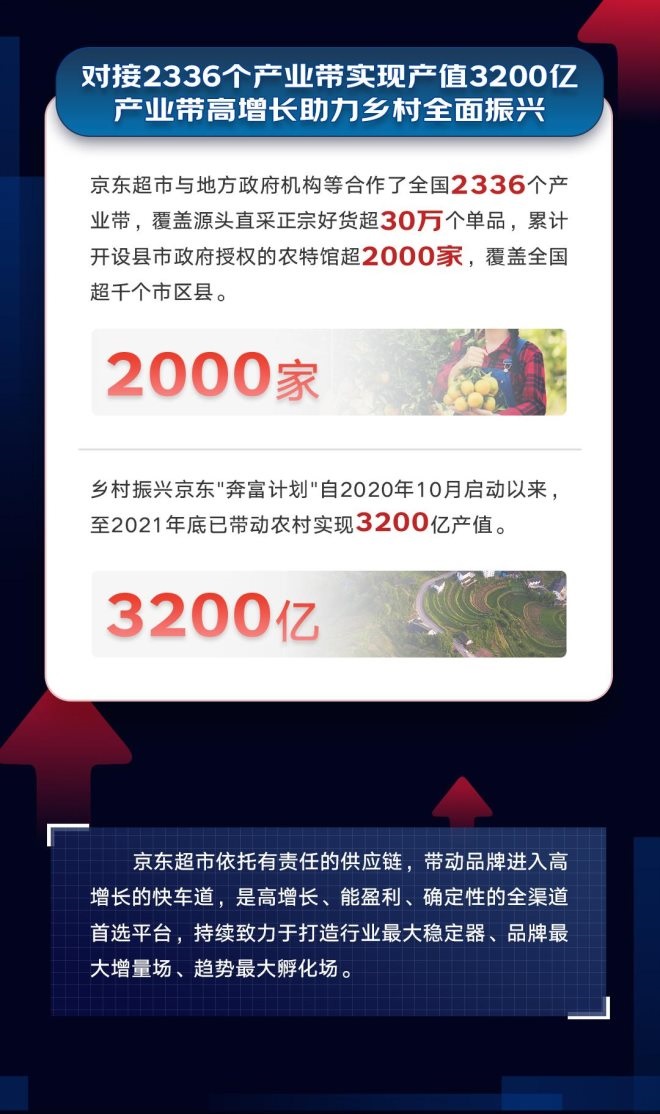在鄉(xiāng)村振興方面,京東超市與地方政府機(jī)構(gòu)等合作了全國2336個(gè)產(chǎn)業(yè)帶,覆蓋源頭直采正宗好貨超30萬個(gè)單品,累計(jì)開設(shè)縣市政府授權(quán)的農(nóng)特館超2000家,覆蓋全國超千個(gè)市區(qū)縣。