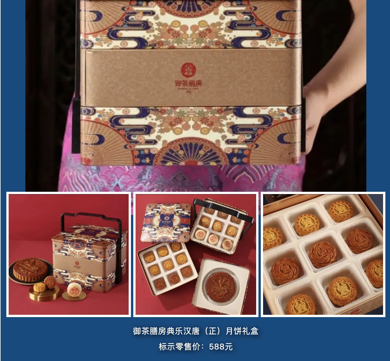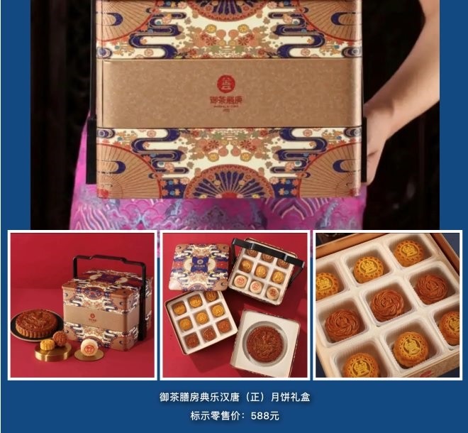 而在去年,御茶膳房典樂漢唐(正)月餅禮盒的標示零售價為588元。