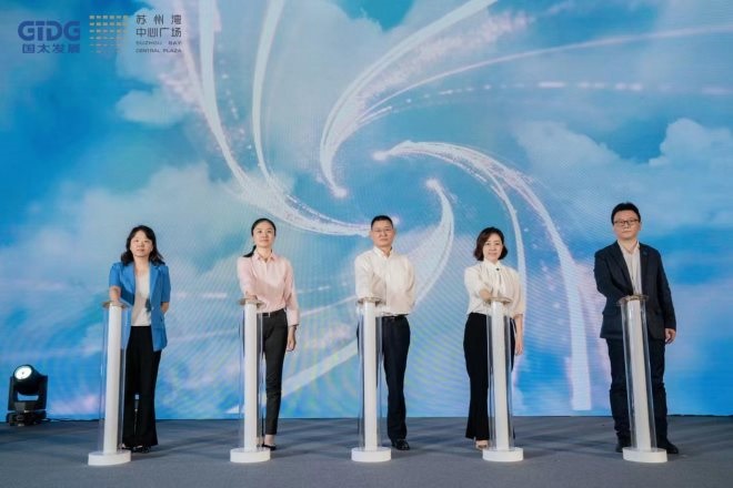 簽約儀式后,國太公司董事長張少怡同各位領(lǐng)導(dǎo)一起上臺(tái),共同按下了啟動(dòng)鍵,至此,蘇州灣中心廣場招商發(fā)布會(huì)圓滿舉辦。