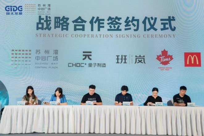 現(xiàn)場,蘇州灣中心廣場與「量子制造·元」、「班嵐」、「Tim Hortons」、「麥當(dāng)勞」、「小米|米家智能家居館」、「蘭」、「豐食薈」、「扎夫|Pizza farm」、「松魚亭·松宴」、「松神」、「拾悅紅」、「雷允上」等商戶現(xiàn)場簽約,期待一同給顧客提供全新的文化、休閑、娛樂的都市樂活感。