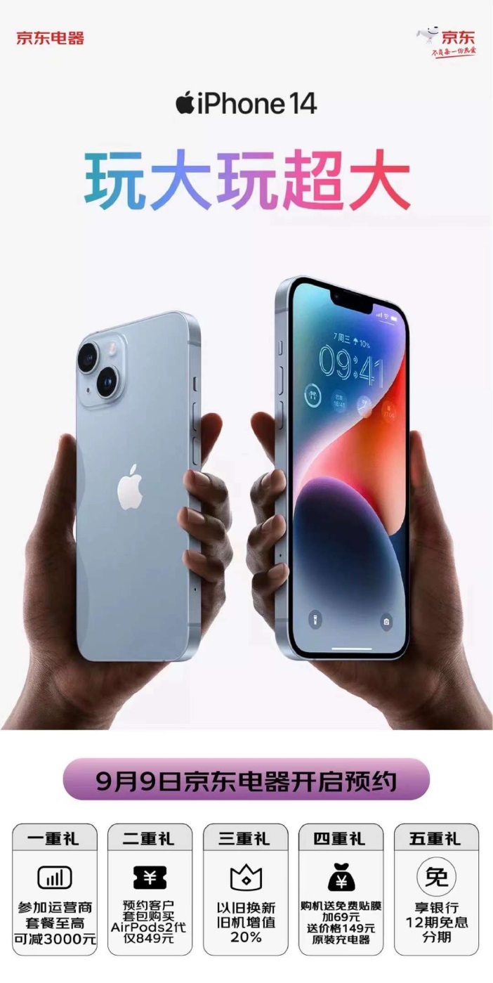 京東五星電器、京東電器全面開啟預(yù)約iPhone14系列