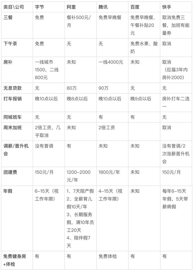 快手福利可能是縮水最嚴(yán)重的,沒(méi)了免費(fèi)三餐,下午茶,大小周加班費(fèi),房補(bǔ)。