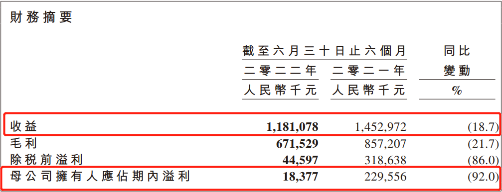 財(cái)報(bào)顯示,去年同期,周黑鴨總營(yíng)收為14.53億元,同時(shí),凈利潤(rùn)為2.3億元,而此次財(cái)報(bào)中所披露的營(yíng)收和凈利潤(rùn)相較于2021年上半年,在營(yíng)收上下降18.7%,歸屬母公司凈利潤(rùn)同比下降92%。