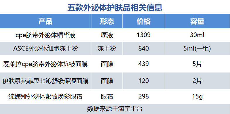 從零售價(jià)來看,這些產(chǎn)品普遍價(jià)格不菲,30毫升的cpe臍帶外泌體精華液售價(jià)高達(dá)1309元,5毫升的ASCE外泌體細(xì)胞凍干粉售價(jià)甚至達(dá)到了840元,平均克售價(jià)高于一線大牌。