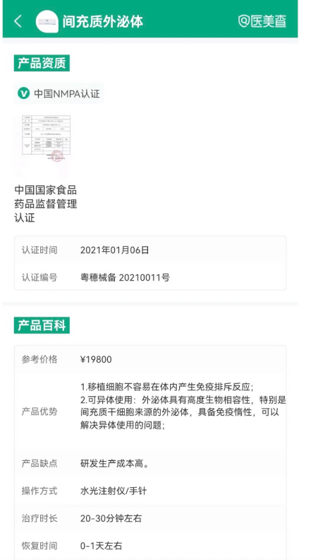 但和化妝品領(lǐng)域的這些產(chǎn)品相比,醫(yī)美領(lǐng)域的產(chǎn)品定價(jià)則更高。據(jù)《醫(yī)美查》APP顯示,目前水光針類的外泌體產(chǎn)品定價(jià)基本在1萬元以上。但這些產(chǎn)品,只有部分是二類醫(yī)療器械,大多數(shù)都是一類醫(yī)療器械甚至妝字號(hào)。但根據(jù)2021年11月9日,國家藥品監(jiān)督管理局醫(yī)療器械標(biāo)準(zhǔn)管理中心對(duì)外發(fā)布的關(guān)于征求《醫(yī)療器械分類目錄》調(diào)整意見的通知,“水光針”將被列入“第三類醫(yī)療器械”進(jìn)行監(jiān)管。