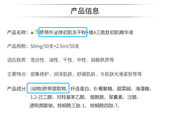 《未來跡Future Beauty》發(fā)現(xiàn),目前市面上很多宣稱含“外泌體”的護(hù)膚產(chǎn)品,其在藥監(jiān)局備案的產(chǎn)品成分表中,并沒有“外泌體”。但這些產(chǎn)品很多都有一個(gè)共同的成分“(動(dòng)物)臍帶提取物”,而在進(jìn)行相關(guān)產(chǎn)品介紹時(shí)則會(huì)使用“臍帶外泌體”字樣。