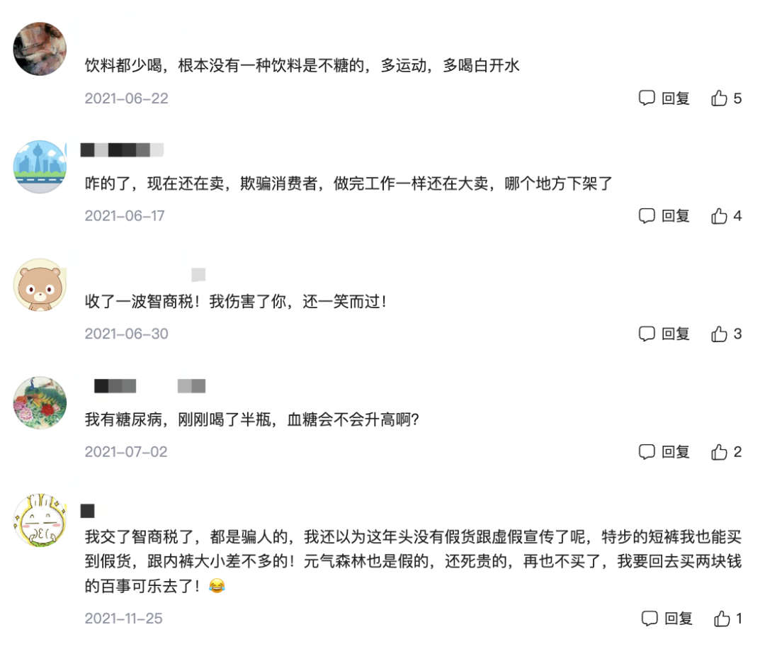 由于長久以來的品牌印象,以及消費(fèi)者的知識盲區(qū),很多人誤以為0蔗糖便是0糖。因誤導(dǎo)消費(fèi)者而惹眾怒的元?dú)馍肿詈蟀l(fā)布了“遲來”的道歉公告,一眾消費(fèi)者對此并不買賬,很顯然,在一次欺騙帶給用戶的心理陰影并非一些蠅頭小利的道歉紅包所能彌補(bǔ)的。