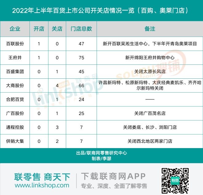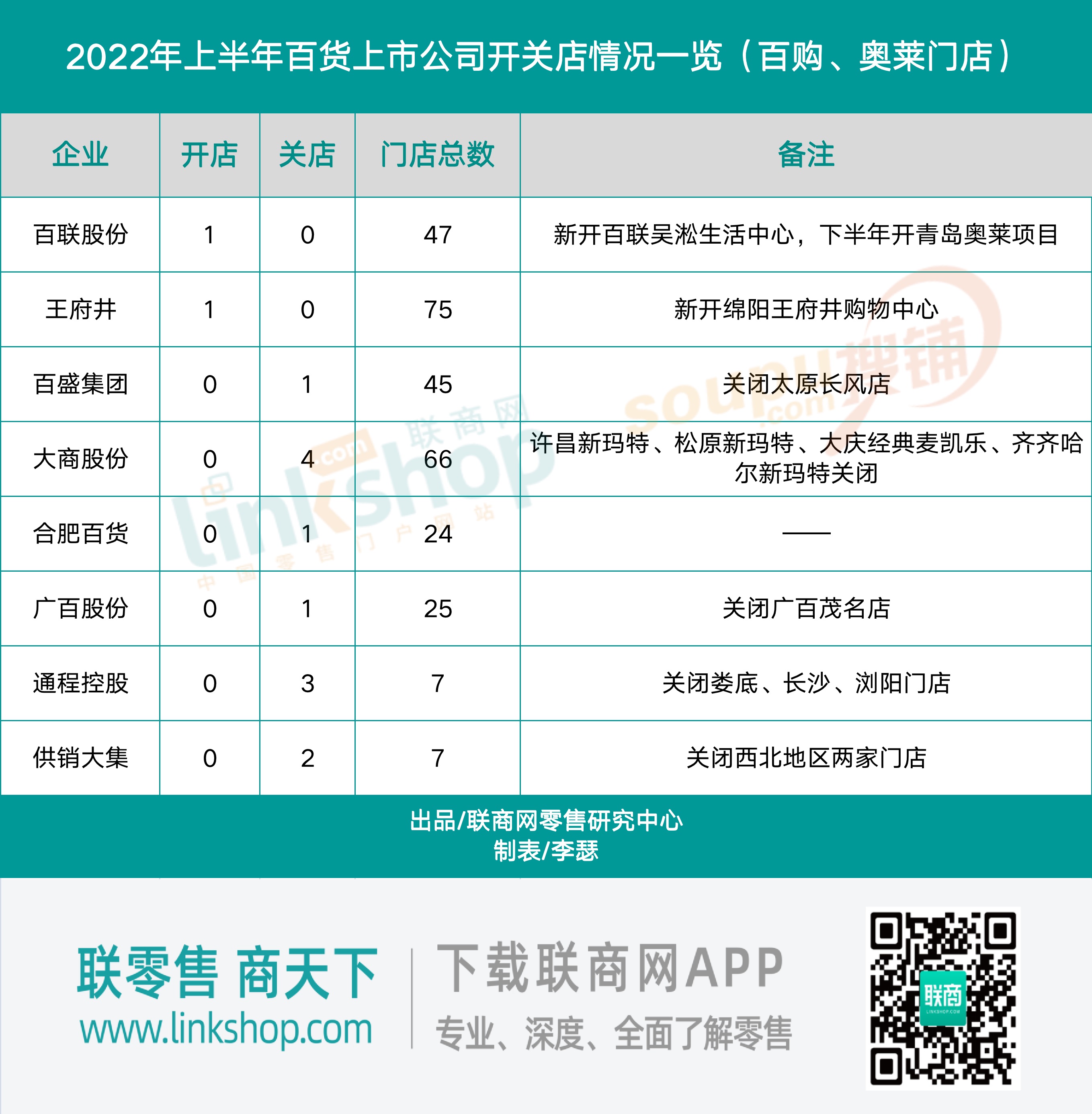 上半年,僅百聯(lián)股份和王府井各自開出1家門店。