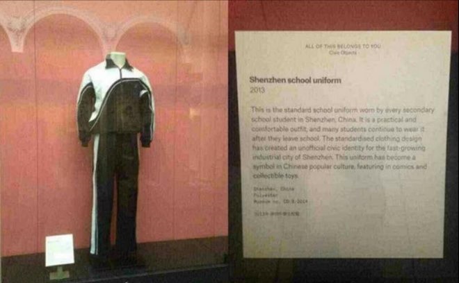 ▲圖為深圳校服在英國博物館展出。(圖源:深圳新聞網(wǎng))