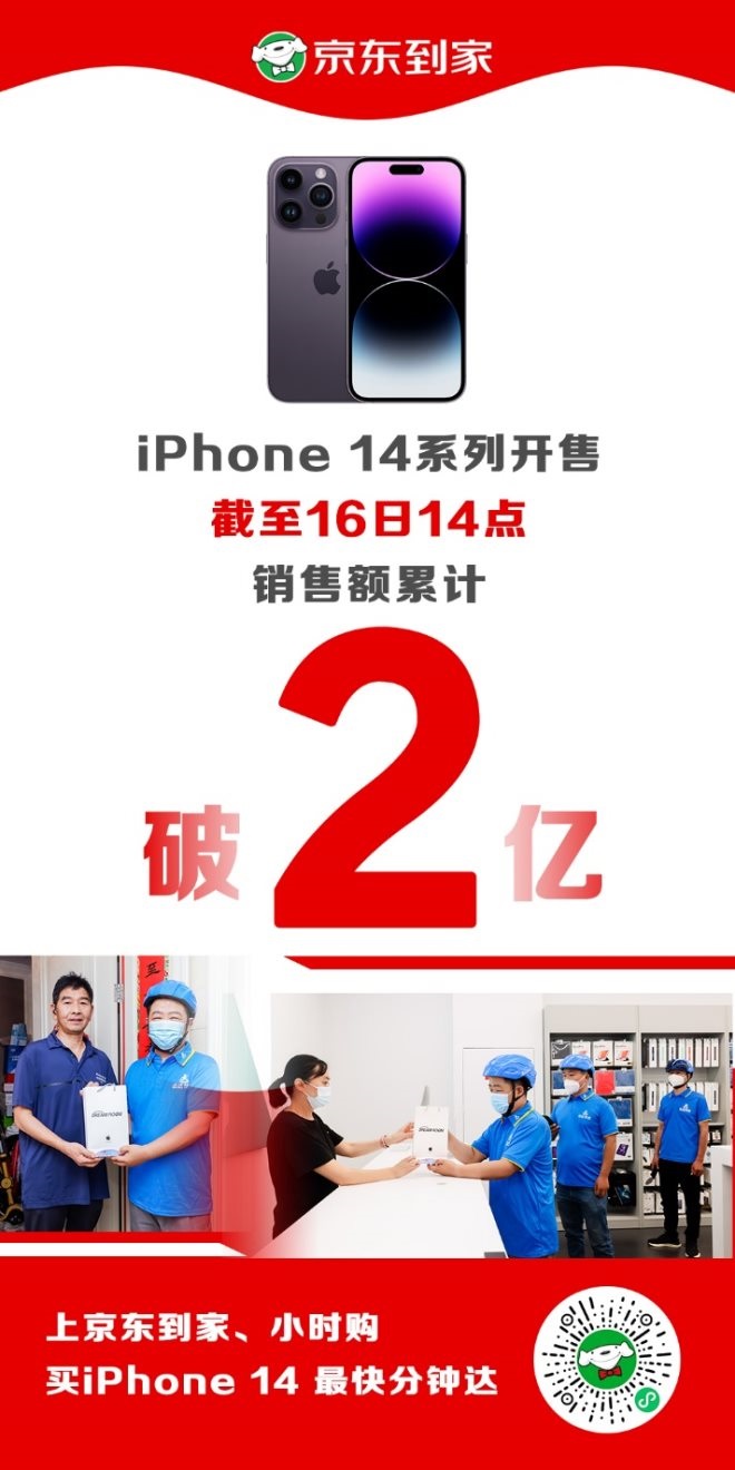 京東到家iPhone 14系列截至開(kāi)售當(dāng)天14點(diǎn)銷(xiāo)售額累計(jì)破2億