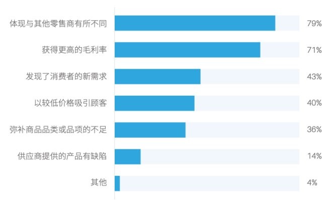 2022年自有品牌產(chǎn)業(yè)研究院對(duì)于中國(guó)零售商的調(diào)研結(jié)果也顯示,“體現(xiàn)差異化”是零售開發(fā)自有品牌的首要目的。
