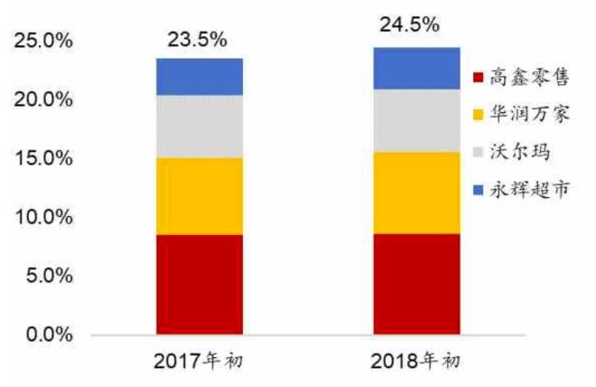 根據(jù)Kantar機(jī)構(gòu)的數(shù)據(jù)顯示,2018年中國(guó)零售行業(yè)集中度已經(jīng)達(dá)到24.5%。未來(lái)幾年,中國(guó)零售商的自有品牌占比有望達(dá)到20-30%。