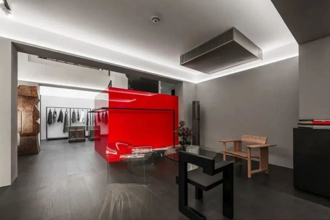 沉穩(wěn)黑色的地面和張揚(yáng)紅色的立面形成色調(diào)碰撞。