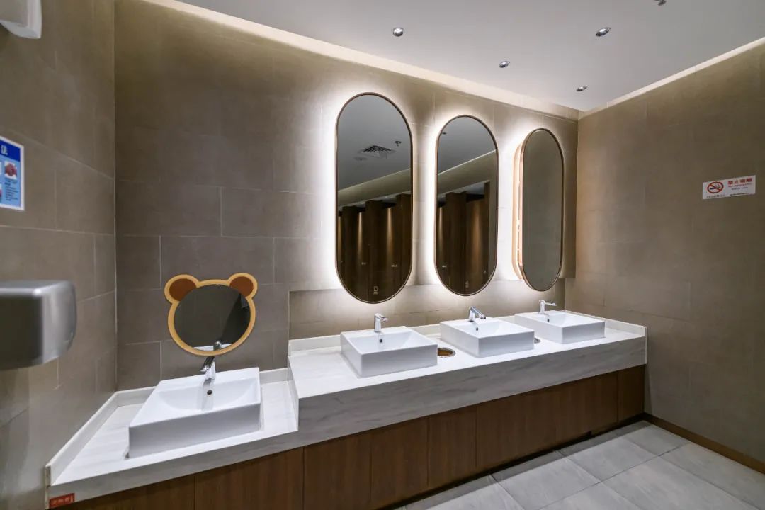 洗手間的改造除了在色彩、燈光、地板以及潔具等進行更新外,更在母嬰室、無障礙衛(wèi)生間等功能空間進行了新增。截至目前,商場已經(jīng)完成了11個母嬰室的改造,2-8層均配置了1-2個母嬰室。同時,員工與顧客衛(wèi)生間單獨分開,增加了顧客的體驗感。