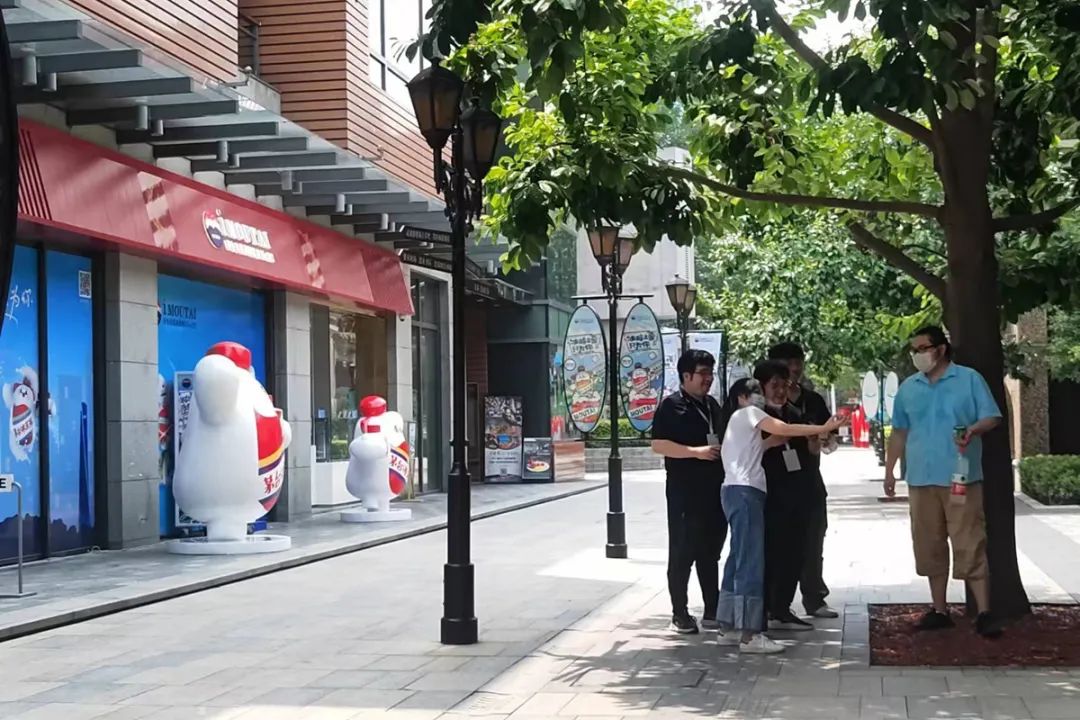在距離茅臺冰淇淋店不遠(yuǎn)的地方,一群打扮時髦的上海阿姨爺叔正在街區(qū)里各色老建筑前拗造型拍照,他們似乎并沒有注意到這個新開的網(wǎng)紅店。