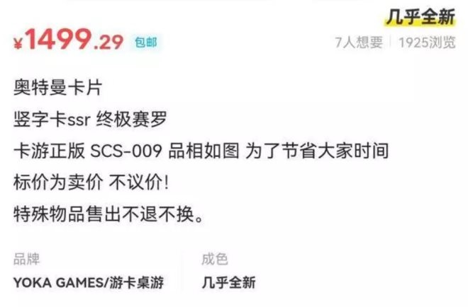 今年夏天,一則#家長花200萬給娃集奧特曼沒集齊#的話題登上熱搜,隨之,“閑魚‘奧特曼豎字卡ssr終極賽羅SCS-009’卡牌售價1499元”、“勒布朗·詹姆斯的球星卡拍出240萬美元”、“一張《游戲王》紀(jì)念卡牌起拍價80元一路飆只8732萬”、“萬人圍觀拆卡直播”等熱議話題接連出現(xiàn)。