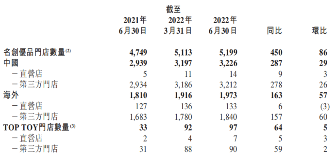 藍(lán)鯨資本認(rèn)為,大幅降低特許經(jīng)營(yíng)費(fèi)的行為意味著名創(chuàng)優(yōu)品對(duì)客戶和供應(yīng)商的品牌價(jià)值在下降,此外,它還會(huì)侵蝕公司未來的利潤(rùn)。根據(jù)財(cái)報(bào),截至2022年6月30日,名創(chuàng)優(yōu)品國(guó)內(nèi)第三方門店為3212家,按照8萬元和2.98萬元的差額計(jì)算,每年僅特許經(jīng)營(yíng)費(fèi)的收入就減少了1.61億元。