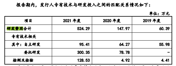 相比動輒上億元的營銷投入,敷爾佳在研發(fā)支出方面可謂“擠牙膏”。2019年至2021年,公司研發(fā)投入分別為 60.39 萬元、147.97 萬元以及524.29萬元,占營業(yè)收入的比例分別為 0.04%、0.09%及 0.32%。