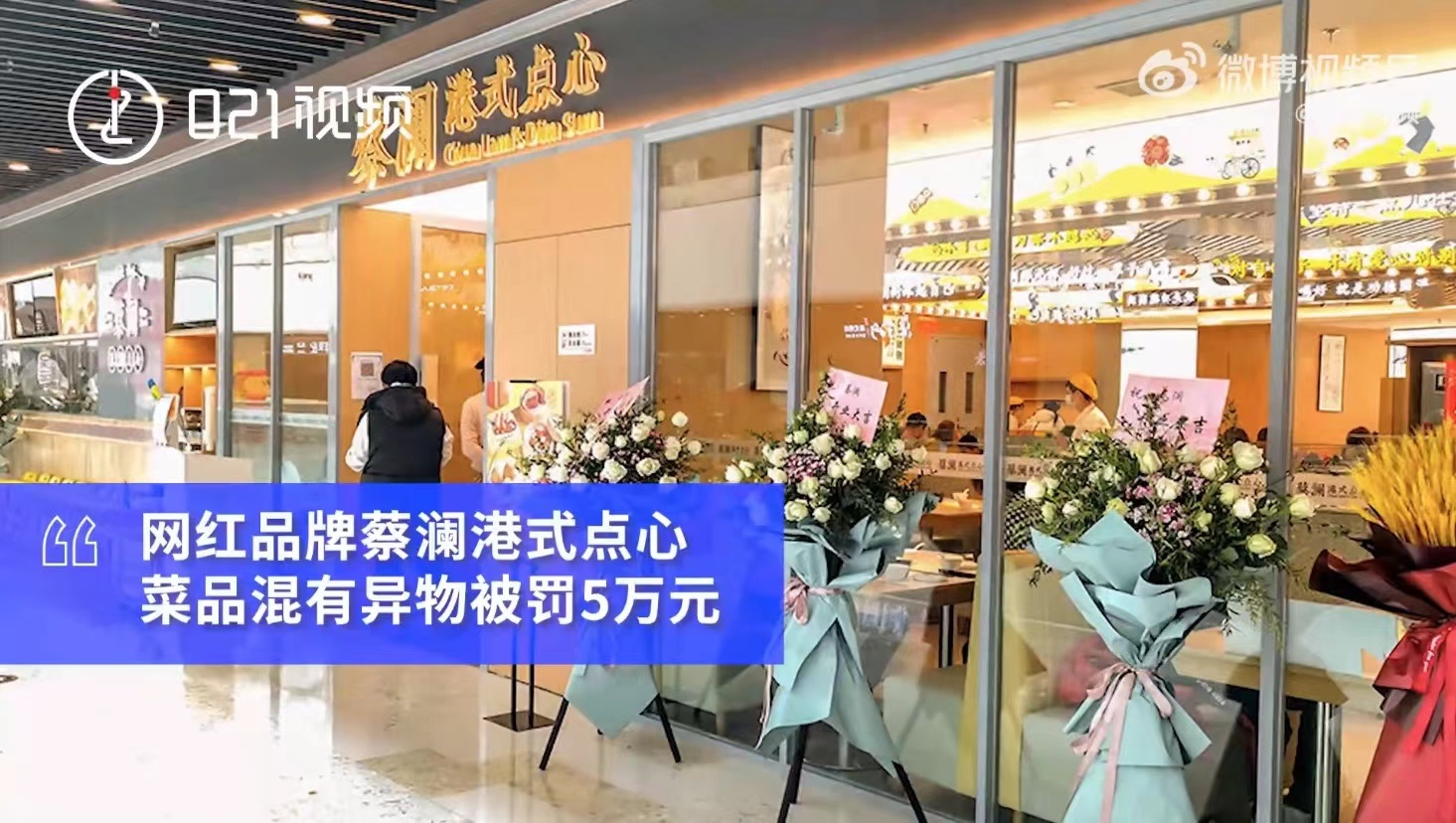 網(wǎng)紅品牌蔡瀾港式點(diǎn)心菜品吃到異物被罰