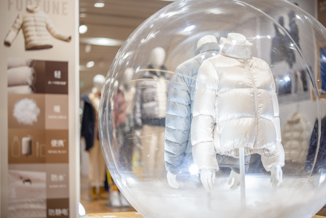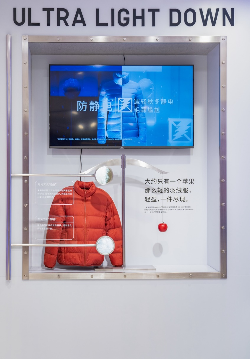 優(yōu)衣庫“品質(zhì)科技生活館”內(nèi),重量只有約一個(gè)蘋果的高級(jí)輕羽絨