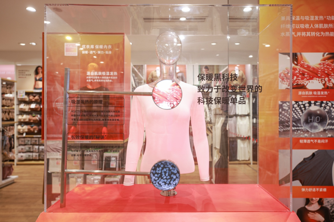 優(yōu)衣庫“品質(zhì)科技生活館”內(nèi),可視化裝置展示HEATTECH保暖內(nèi)衣的面料科技