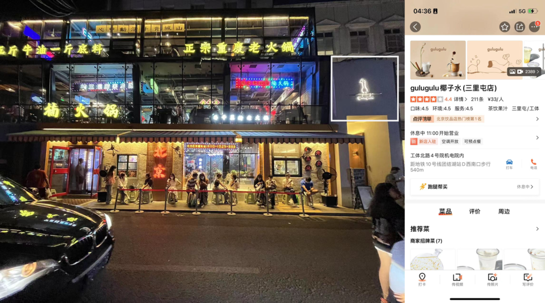 內(nèi)參君發(fā)現(xiàn),緊鄰著楠火鍋,還有有一家gulugulu椰子水的茶飲店,在大眾點評上,位列北京市飲品熱門榜第1名。