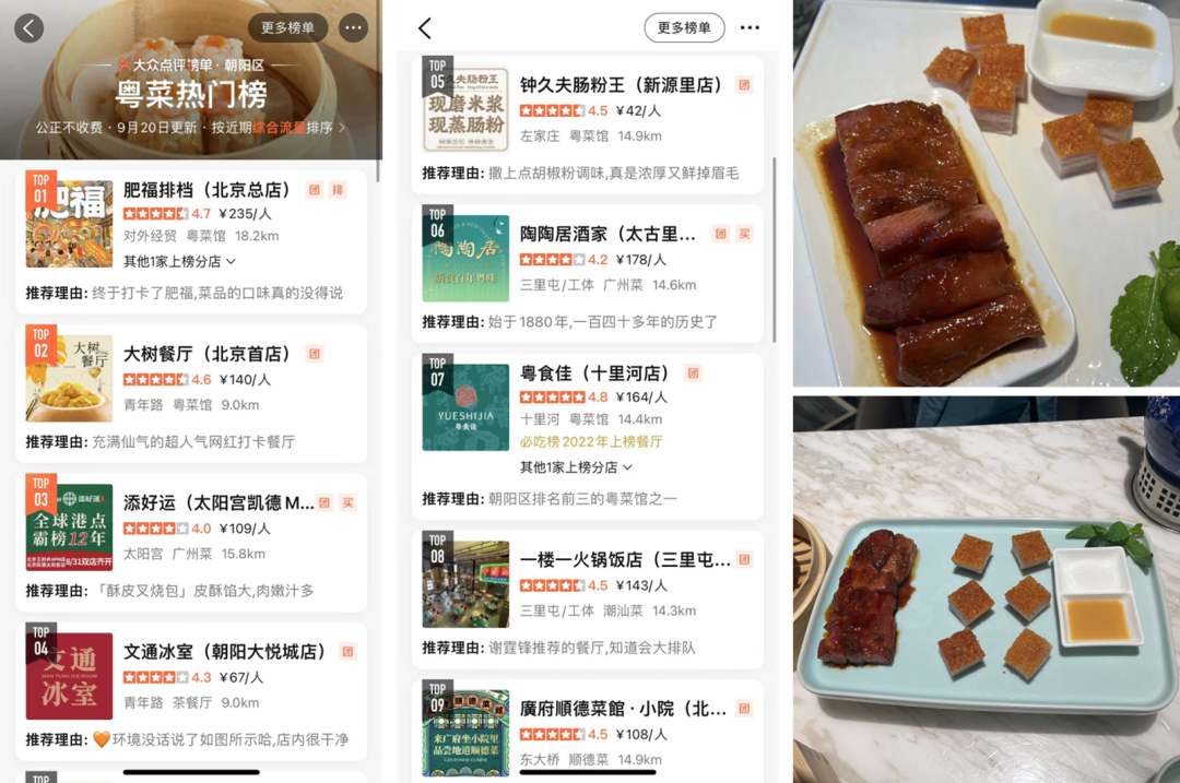 目前,大眾點評9月20日更新的粵菜熱門榜上,陶陶居排名朝陽區(qū)第6,全城第11。評分為4.2,客單價已經(jīng)從開店初期的150元上升到178元。