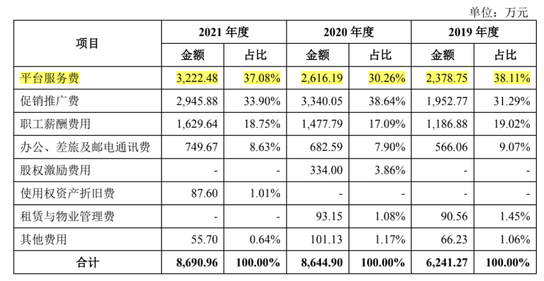 同時(shí),招股書顯示,公司平臺(tái)服務(wù)費(fèi)分別為2378.75萬(wàn)元、2616.19萬(wàn)元、3222.48萬(wàn)元;分別占外賣業(yè)務(wù)收入的4.82%、4.56%、4.60%。