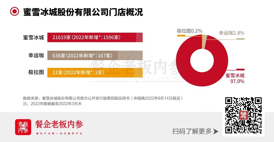9月22日,證監(jiān)會官網(wǎng)信息顯示,蜜雪冰城股份有限公司深交所主板上市申請已獲受理,并正式預(yù)披露招股書。蜜雪冰城是國內(nèi)現(xiàn)制茶飲賽道門店數(shù)最多的品牌。截至2022年3月末,公司已有2萬余家門店。其中,蜜雪冰城有21649家門店,咖啡品牌幸運咖共開出636家門店,冰激凌品牌極拉圖共開出21家門店。