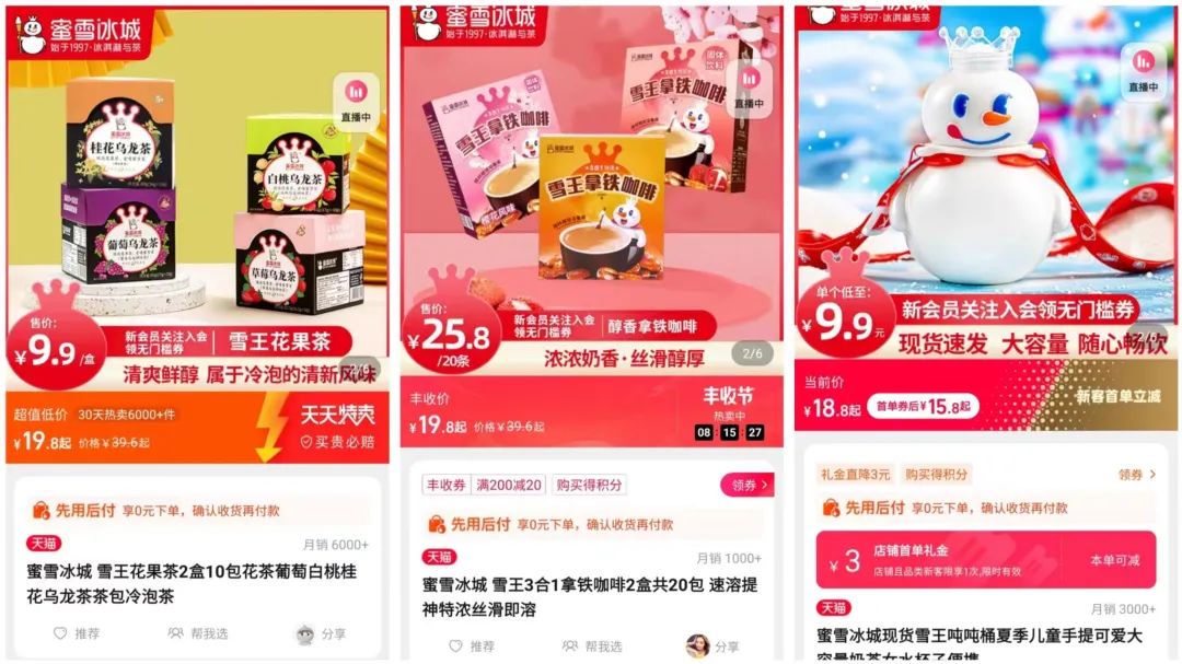 蜜雪冰城靠門店覆蓋率影響消費者,門店就是廣告,不需要花太多錢做營銷。2019年至2021年,蜜雪冰城的廣告宣傳費依次為:1250萬元、1858萬元、3452萬元。為了更好樹立雪王IP,蜜雪冰城公司利用龐大的門店網(wǎng)絡(luò)終端進(jìn)行線下宣傳,也通過官方抖音賬戶、 微信公眾號、官方微博等,在節(jié)日、新品上市等時點舉辦各類線上營銷活動。蜜雪冰城出圈洗腦的營銷背后,是“你不嫌我窮,我不嫌你土”的營銷邏輯。而蜜雪冰城用戶中,又包含龐大的具有創(chuàng)造力的小鎮(zhèn)青年和學(xué)生群體,這些人也積極加入到了二創(chuàng)的隊伍中去。目前蜜雪冰城在微信公眾號、抖音、 快手、微博等平臺的粉絲數(shù)量總計約三千萬,其中抖音平臺上,“雪王”IP相關(guān)視頻播放量已超過10億次、“蜜雪冰城”主題曲播放量已超過40億次、“蜜雪冰城”相關(guān)話題播放量已超過170億次,不斷擴(kuò)大品牌影響力。雖然蜜雪冰城的主要陣地還是在線下,但是流量已經(jīng)“溢出”到線上。平臺電商、興趣電商、直播帶貨一個不落。憑借著成功打造出的雪王IP,以及洗腦主題曲,蜜雪冰城線上周邊及杯具銷量十分可觀。在2021年,蜜雪冰城在電商平臺上靠著賣茶包、杯子、茶具、玩偶等零售產(chǎn)品,收入1.2億元,據(jù)相關(guān)數(shù)據(jù)顯示,今年蜜雪冰城的零售業(yè)務(wù)有望沖擊3個億。