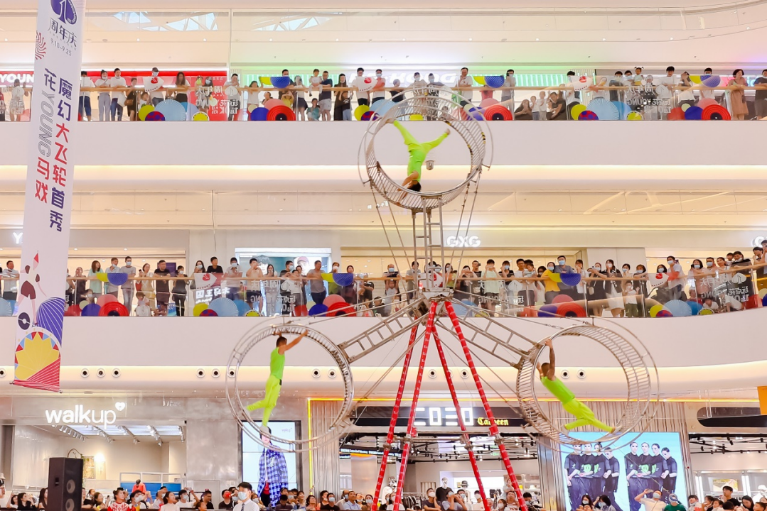 紫荊天街帶來了「這很可以」在地青年生活節(jié),以弟弟Starbo杭城首秀舞臺、武林巔峰對決季、老友碰頭俱樂部、年青社區(qū)公益周的系列活動同年輕人一起向生活致敬;江東天街在中秋恰逢一周年慶,選擇以一場震撼的魔幻大飛輪「花YOUNG馬戲」主題秀,在家庭歡聚之際共慶佳節(jié)。