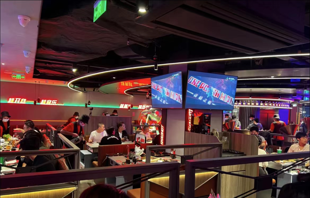 比如整個(gè)門店都被LED屏幕所圍繞,店內(nèi)無(wú)死角播放體育賽事轉(zhuǎn)播。