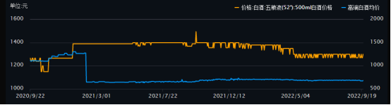 與53°飛天茅臺(tái)對應(yīng)的五糧液代表產(chǎn)品第八代52°,其同期價(jià)格走勢與飛天茅臺(tái)基本趨同,但價(jià)格僅為茅臺(tái)的三分之一到四分之一左右。雖然也為千元以上,但相比之下,五糧液顯然更接地氣。