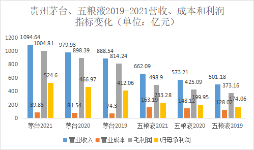 從營業(yè)收入、成本和各級利潤上來看,五糧液的業(yè)績被茅臺(tái)全方面包圍。不過也可以理解,畢竟從市值上看,茅臺(tái)也是五糧液的3倍多。但是仔細(xì)觀察,可以發(fā)現(xiàn)茅臺(tái)的營業(yè)成本低得嚇人,三年來都控制在了100億元以內(nèi),而五糧液則均超過了100億元,進(jìn)而導(dǎo)致了兩者產(chǎn)品的毛利率和歸母凈利率分別有著接近18%和13%的較大差距。