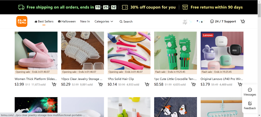 需要注意的是,這些看起來很低的價(jià)格并不是最終價(jià)格,新用戶還可以領(lǐng)取七折優(yōu)惠券疊加使用,最終支付的價(jià)格會(huì)比頁面顯示的更低。如此低價(jià)的情況下,Temu還推出了免費(fèi)配送和90天內(nèi)免費(fèi)退貨服務(wù),吸引了不少消費(fèi)者。