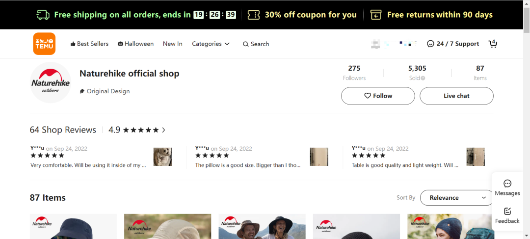 從邏輯來看,Temu與國(guó)內(nèi)拼多多模式以及海外的SHEIN模式都有所不同,在突出低價(jià)貨的同時(shí)也提供了關(guān)注商家的選擇,類似中心式的貨架電商。平臺(tái)內(nèi)也有一些Lenovo(聯(lián)想)和Nuaturehike(挪客)這樣的品牌,但絕大多數(shù)商品還是白牌商家。