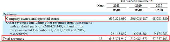 其中,自營店數(shù)量從2019年12月31日的31家,增加至2021年12月31日的373家,3年間,店鋪數(shù)量增長超10倍。