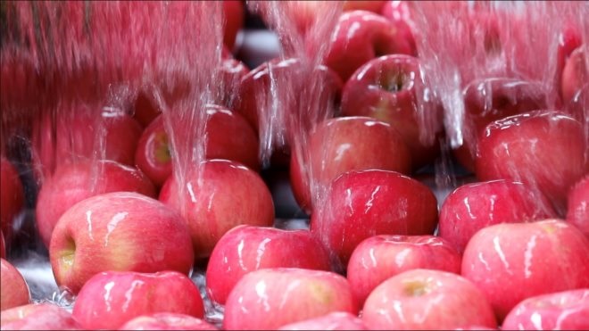 “我們在把控品質(zhì)方面一直高標(biāo)準(zhǔn)嚴(yán)要求,果子從樹上摘下來之后會統(tǒng)一進(jìn)行機器分選,經(jīng)過水洗之后,每個蘋果要拍攝120張X光片檢測是否有碰傷、病蟲害以及著色度,糖度達(dá)到12度才會裝箱。”除此之外,還要根據(jù)果徑和果形進(jìn)行分級。