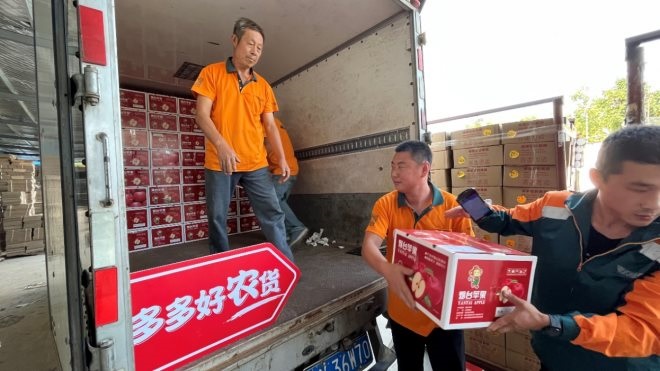 農(nóng)閑時節(jié),周邊果農(nóng)便來到工廠車間幫忙打包發(fā)貨。煙臺津銳億農(nóng)產(chǎn)品有限公司副總張鵬鳴介紹,自拼多多店鋪開設(shè)以來,公司新增就業(yè)崗位多達(dá)200余個,在線上為老百姓賣蘋果超過了1200萬斤,櫻桃超過60萬斤,帶動本地兩百余個農(nóng)民家庭年增收3萬余元。