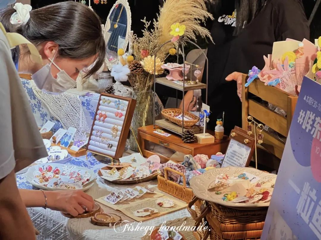 也因此,她的手工作品很依賴市集的環(huán)境、布置和氛圍感,因為稍有不慎就會被不了解手作的人誤認為是廉價地攤貨,認為不值,只有精心布置的市集,才能精準吸引顧客停下腳步認真了解并購買。