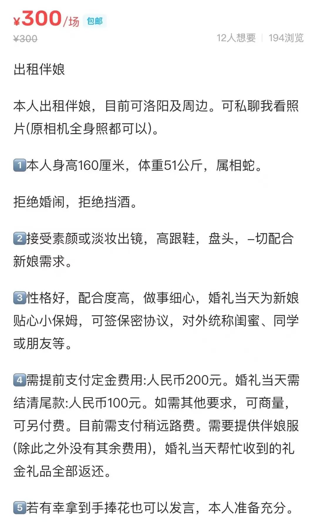 出租伴娘的自我介紹 來源 / 閑魚