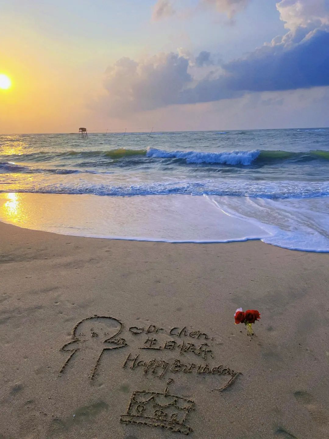 海邊日出時代寫的生日祝福 受訪者供圖