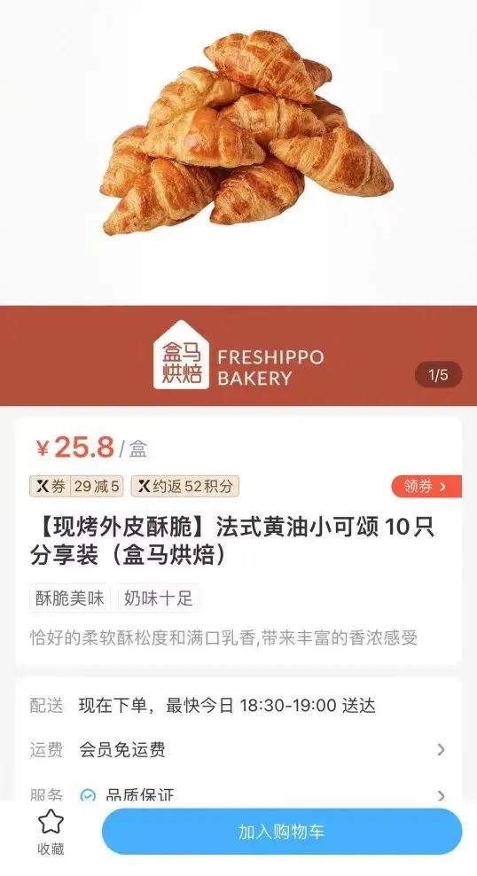 在盒馬鮮生店里要買25.8元的羊角面包,盒馬折扣店只賣19.8元