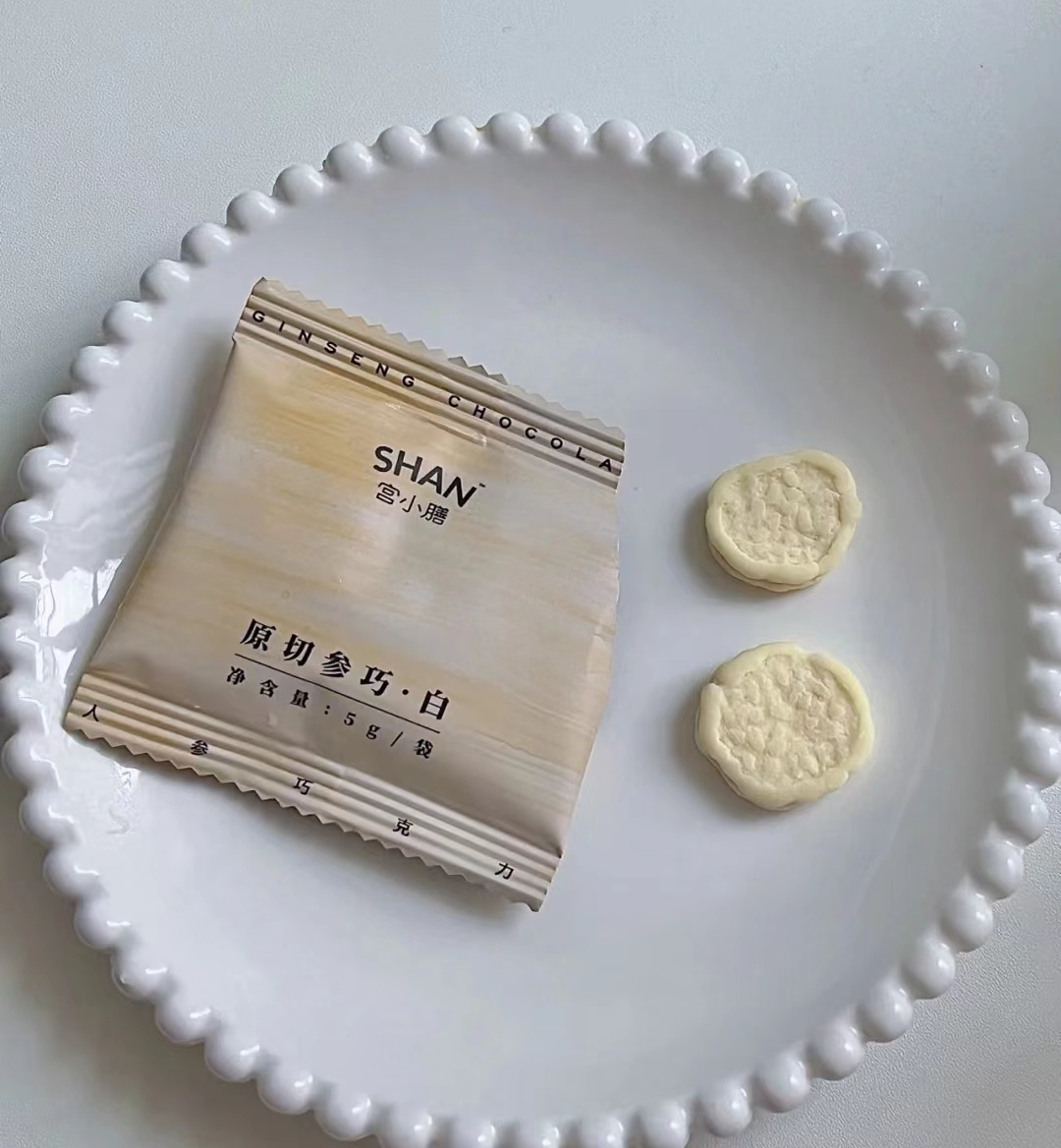巧克力人參采取的是凍干技術(shù),0%的白砂糖凍干人參外被一層巧克力包裹,嚼起來是餅干的口感,當(dāng)味道突破了人參的固有定義時,口感也變得新奇了,新的CP“巧克力+人參”就此誕生。