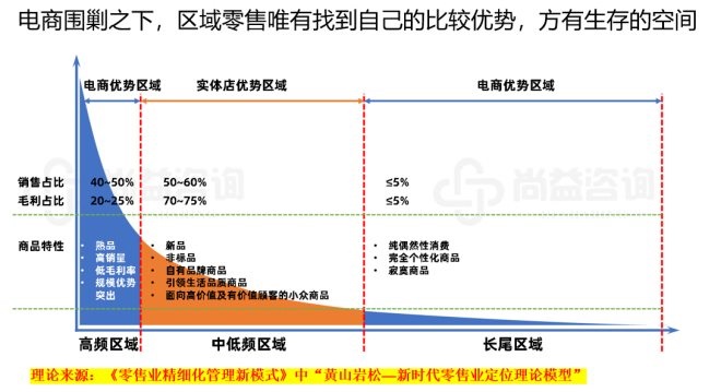 通過上面這個(gè)圖表的直觀分析,我們不難得出實(shí)體商超的定位應(yīng)該放在哪里?當(dāng)大塊頭的電商已經(jīng)搶占了低成本的賽道以后,我們這些小塊頭的實(shí)體商超除了選擇差異化競爭和集中化競爭之路以外,已經(jīng)沒有更好的路可以走了。