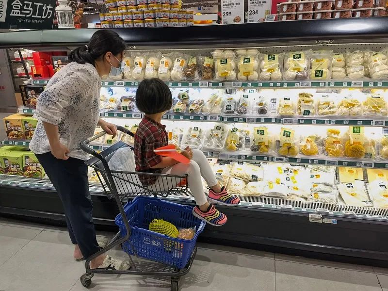 △盒馬多業(yè)態(tài)矩陣定位于老百姓一日三餐的一站式解決方案。圖為消費(fèi)者正在一家盒馬鮮生門(mén)店購(gòu)物。