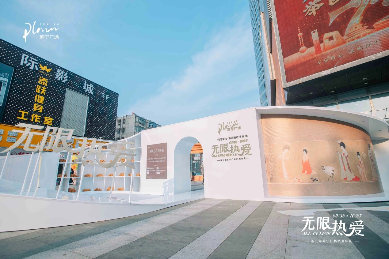 正值八周年慶,連云港蘇寧廣場(chǎng)聯(lián)合連云港博物館打造了ALL IN LOVE無限熱愛藝術(shù)美陳,鏈接城市文化名片。美陳活動(dòng)整體圍繞館內(nèi)文物西漢《神烏傅》竹簡(jiǎn)為原型進(jìn)行創(chuàng)作,以漢字多樣的形態(tài)進(jìn)行雕刻展示,同步配合館內(nèi)古琴、漢舞、竹簡(jiǎn)書寫互動(dòng),充滿了古典文化意趣。