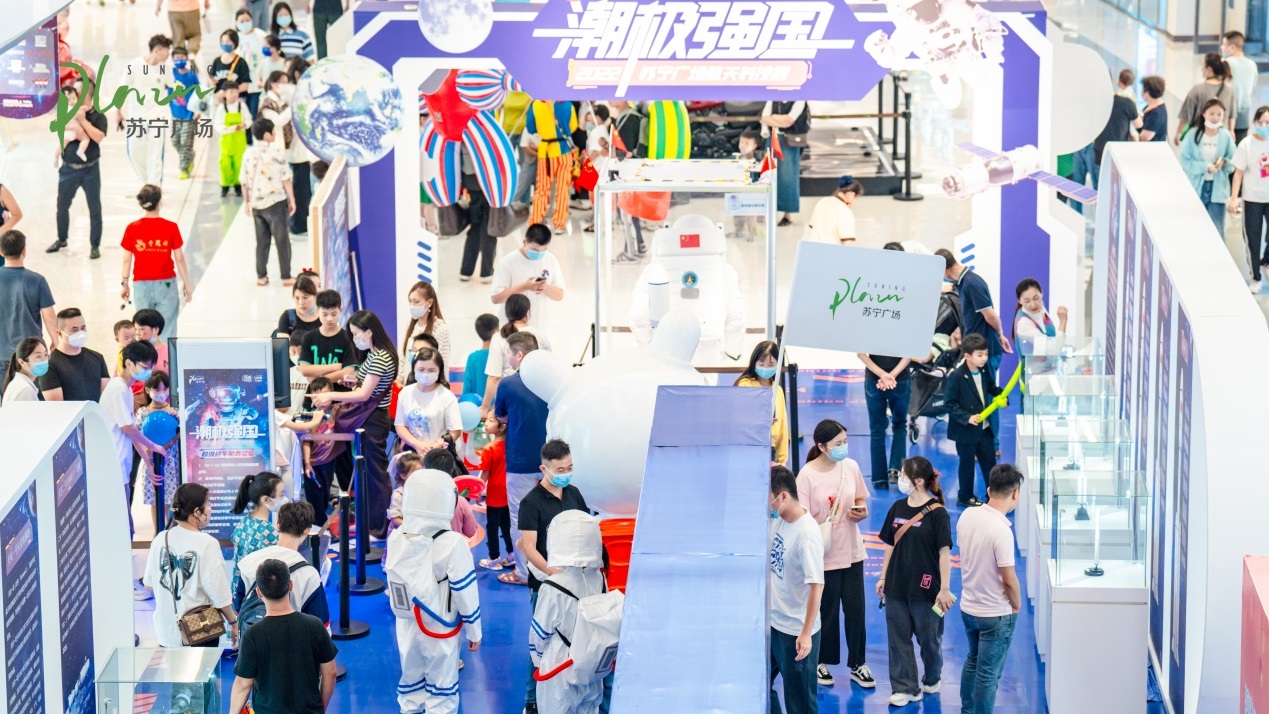 宿州蘇寧廣場(chǎng)將航天科技展搬到了商業(yè)空間內(nèi),重點(diǎn)展示了我國(guó)載人航天、深空探測(cè)等航天成果,包括長(zhǎng)征系列火箭、太空站、航天服等模型。透過這場(chǎng)展覽,讓市民們看到了我國(guó)從空間科學(xué)探索到航天科技成就的征程和跨越,感受到了心底升騰起的民族自信,更是鼓舞了普通人科技筑夢(mèng)的信心。